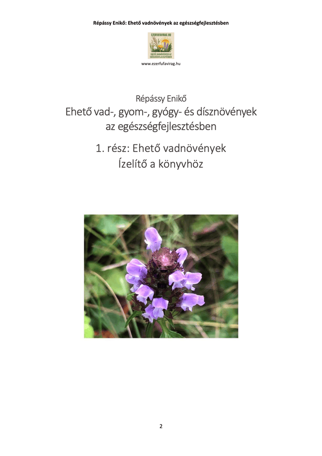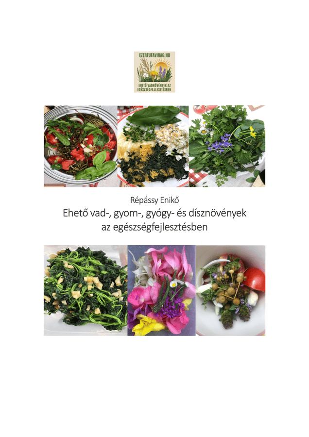 Az e-könyv több, mint 200 oldalas, képekkel gazdagon illusztrált, mintegy 100 vadnövényfajt érintő kredit pontos anyag. A kredit pontokat a Konnektív Kft. felnőttképzőnél, a természetgyógyász szakcsoportban lehet megszerezni.Ezért, ha szükséged van a pontokra, akkor a következő gomb megnyomásával átnavigálhatsz a Konnektív honlapjára.