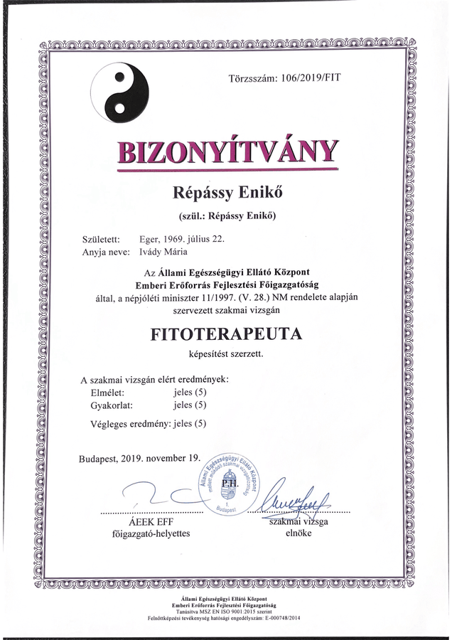 Kertészmérnök-gyógynövénytermesztő, fitoterapeuta és életmódtanácsadó.